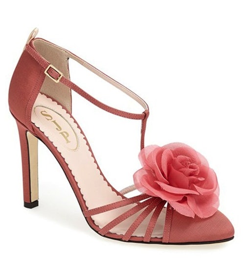 These strappy rose sandals totally remind us of the Christian Louboutin pink cascade ruffle heels that Carrie wore at the end of season 4 to say goodbye to Big. Let's just hope no one's water breaks on us (like Miranda's did on Carrie's Louboutins) if we wear the SJP version!